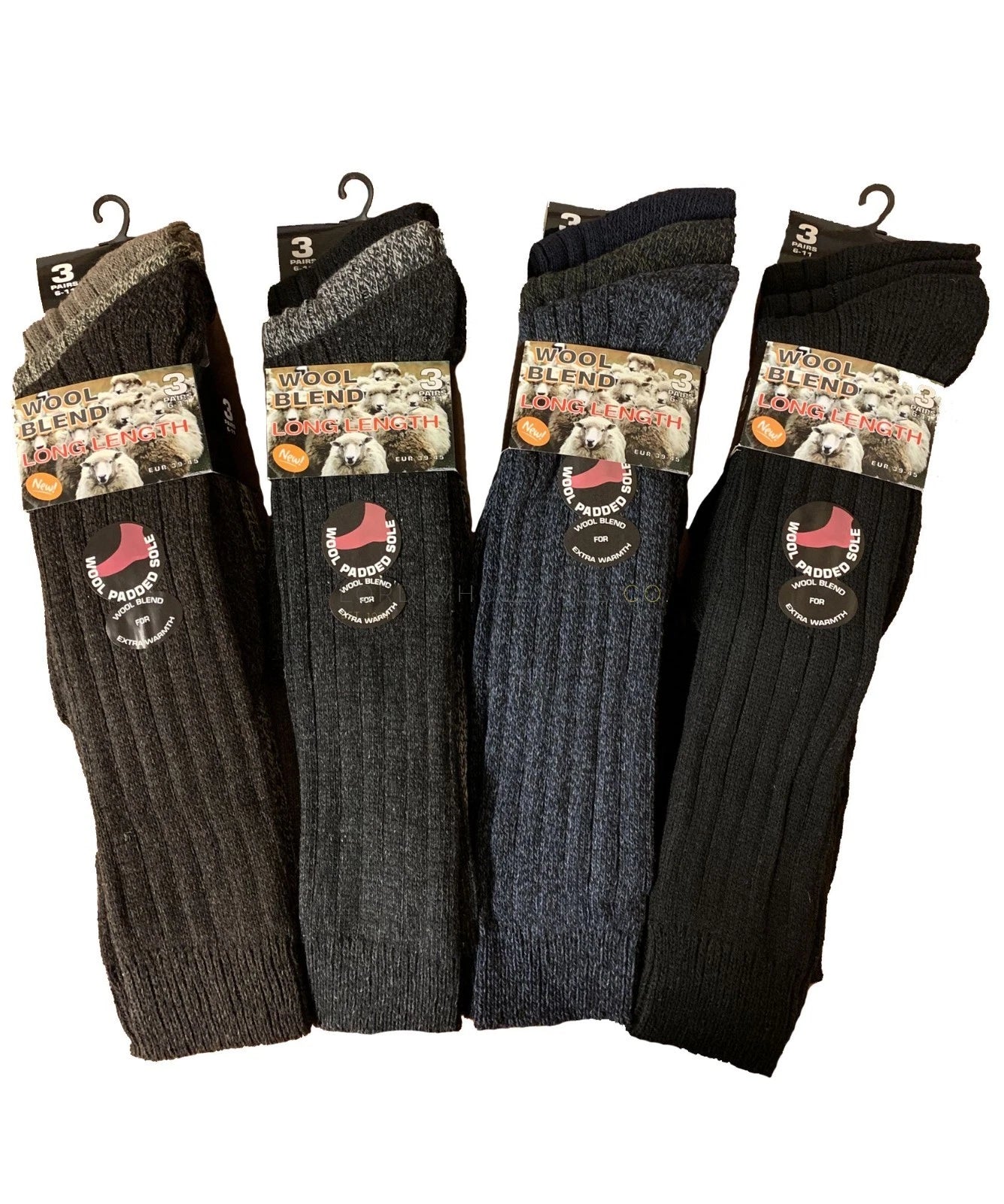 12 Pairs Mens Long Length Light Hold Wool Blend Boot Socks