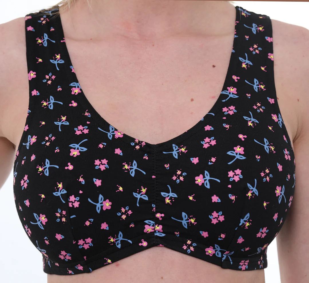 Black Floral Pull On Stretch Cotton Multi Cup Bra Gemm by Dipti
