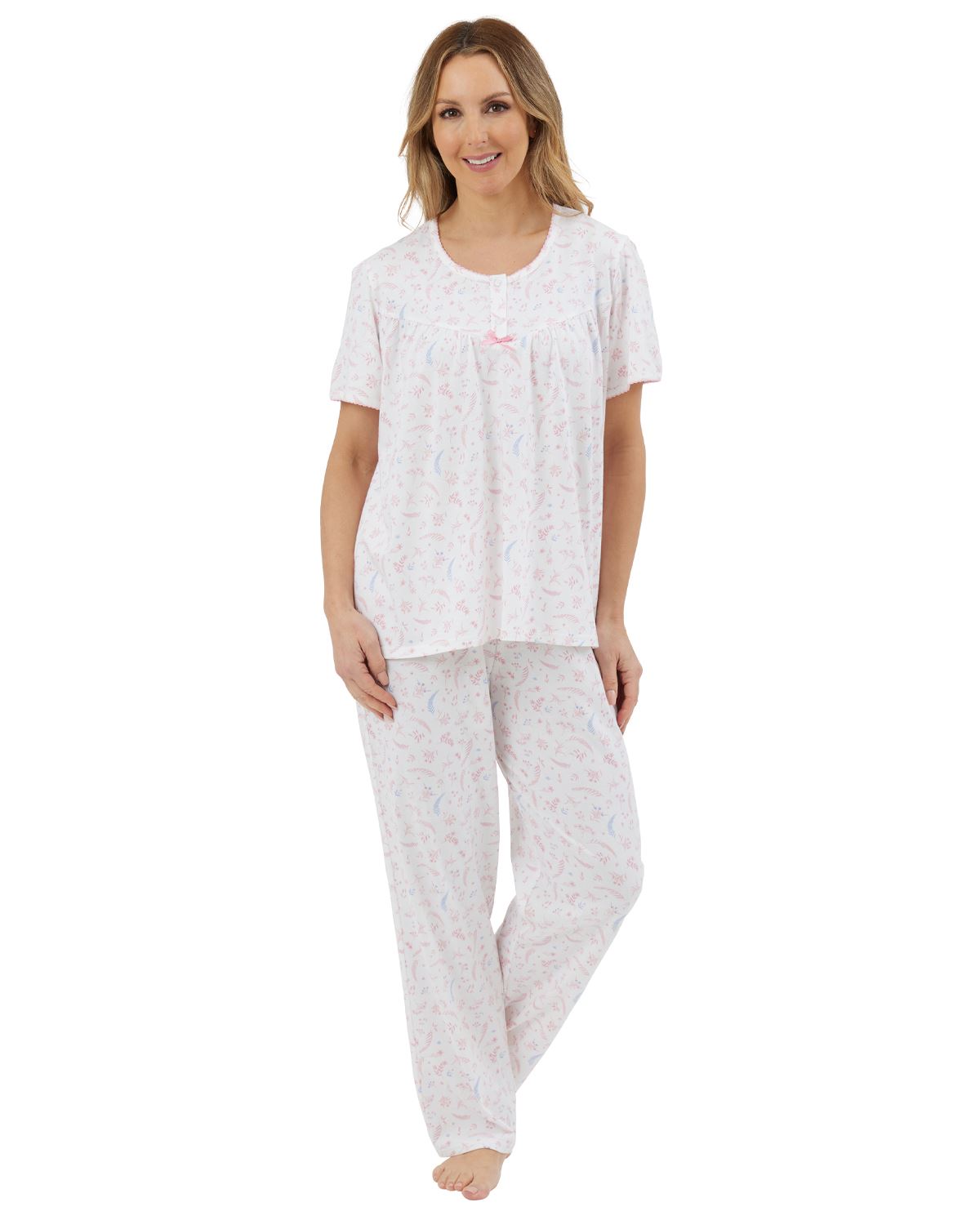 Ladies 100% Jersey Cotton Harvest Floral Short Sleeve Pyjamas by Marlon