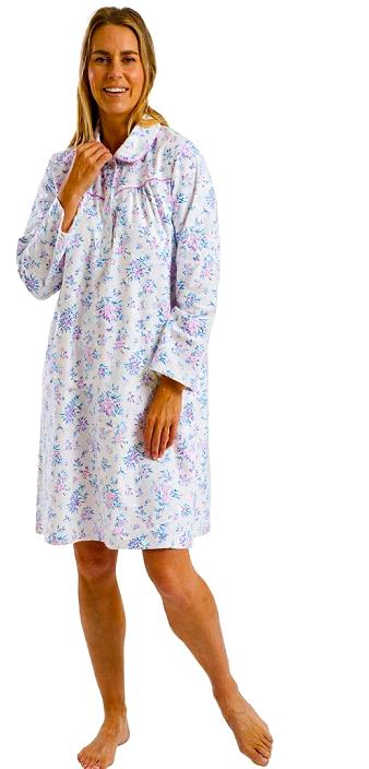 Ladies 40" Brushed 100% Cotton Floral Bouquet Print Wincyette Long Sleeve Nightdress by Marlon