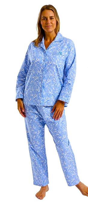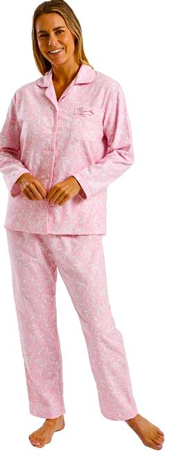 Ladies Brushed 100% Cotton Pretty Vines Print Wincyette Revere Collar Pyjamas by Marlon