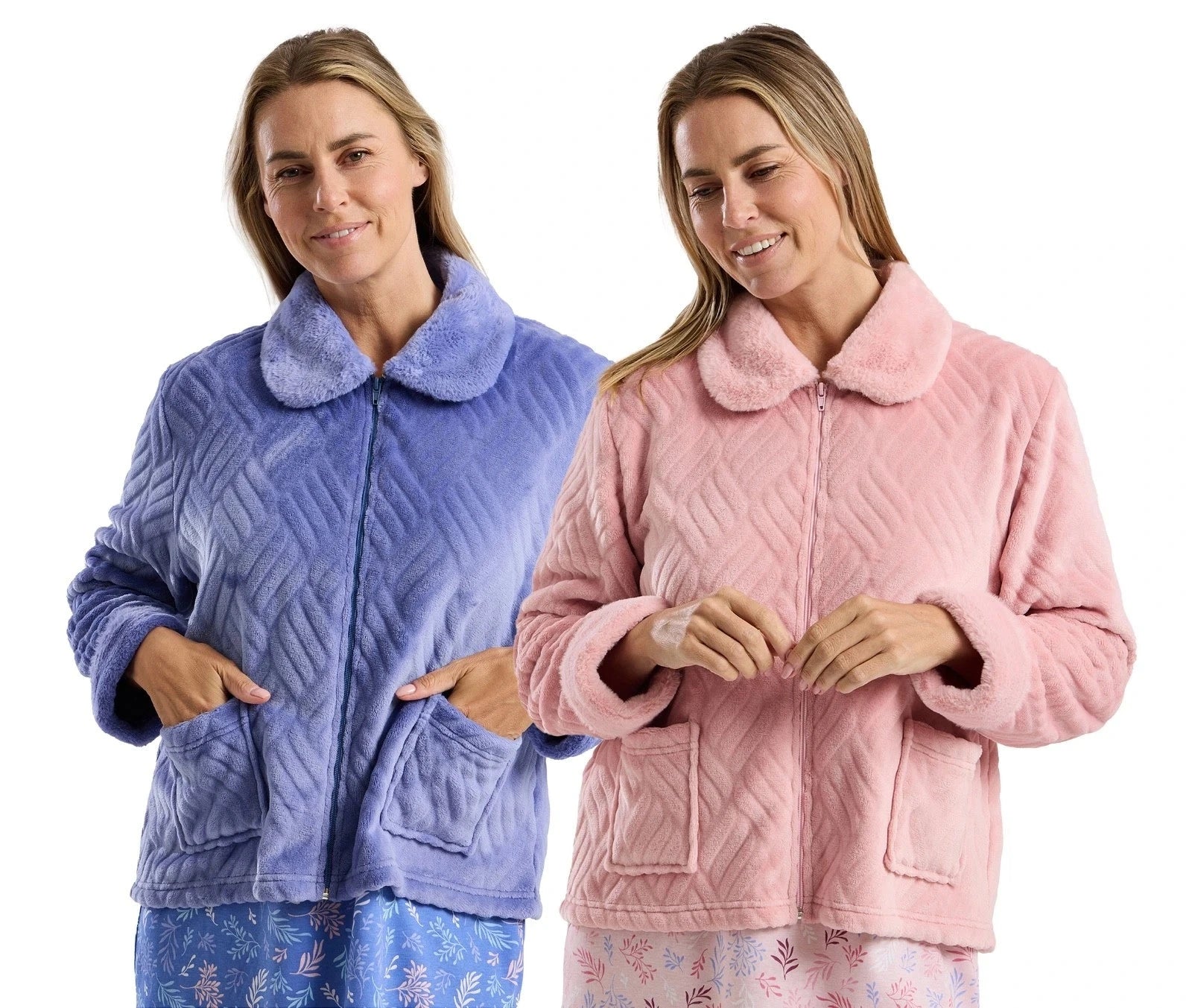 Ladies Soft Feel Faux Fur Trim Cosy Fleece Zip Bed Jacket by Marlon