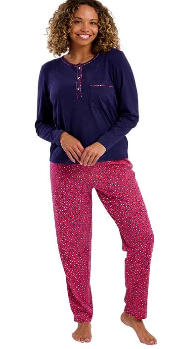 Ladies Long Sleeve Neon Leopard 100% Knitted Cotton Jersey Jogger Pyjama Set by Indigo Sky