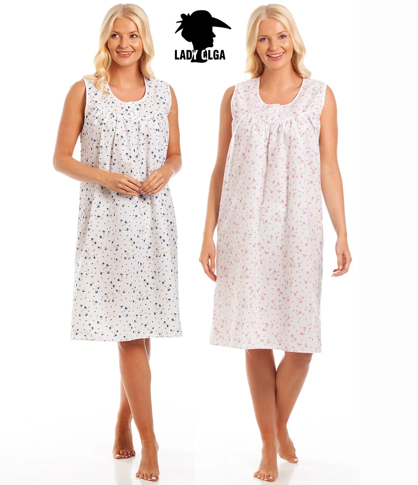 Ladies English Made Poly Cotton Sleeveless Nightdress by Lady Olga,