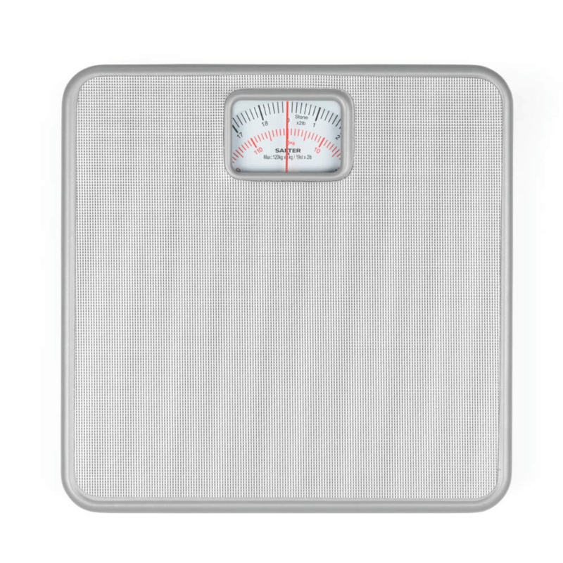 Step onto the Salter Mechanical Bathroom Scale for simple, reliable weight tracking—no batteries or plugs needed. The generous, non-slip rubberised platform keeps you steady, while the large, easy-to-read dial clearly displays your weight in both kilograms and pounds. Its sleek silver finish complements any bathroom décor, and its durable, all-mechanical design means minimal upkeep. With a spacious platform and bright red needle, this scale provides effortless viewing and comfortable, balanced weighing. The mechanical precision displays weight up to 120kg with a clear rotating dial.