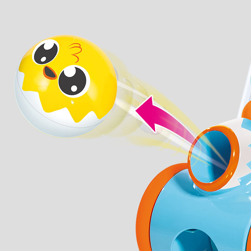 I'm a daredevil - push my handle and watch the balls fly out of the cannon. Roll over me and scoop me back up!