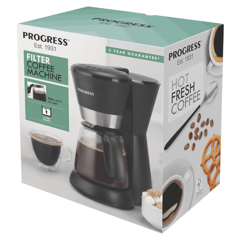 Indulge in a perfect cup of coffee with the Progress Filter Coffee Machine, boasting a generous 1.5L glass carafe and fast brewing capabilities. Enjoy barista-quality coffee at home with the handy keep-warm function and anti-drip system. The machine's sleek design complements any kitchen décor, while the automatic shut-off adds peace of mind. With its eco-friendly reusable filter, you can savour rich, full-bodied coffee in minutes.