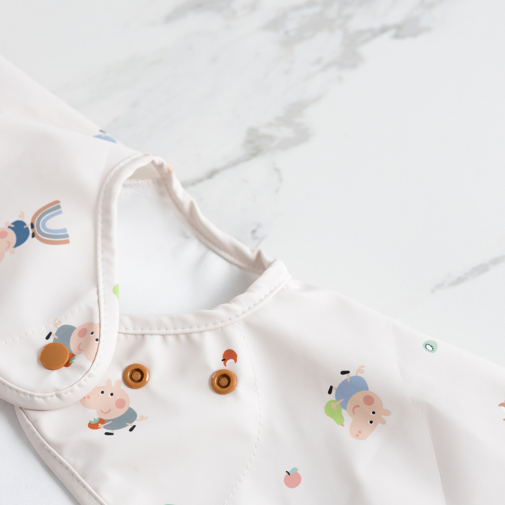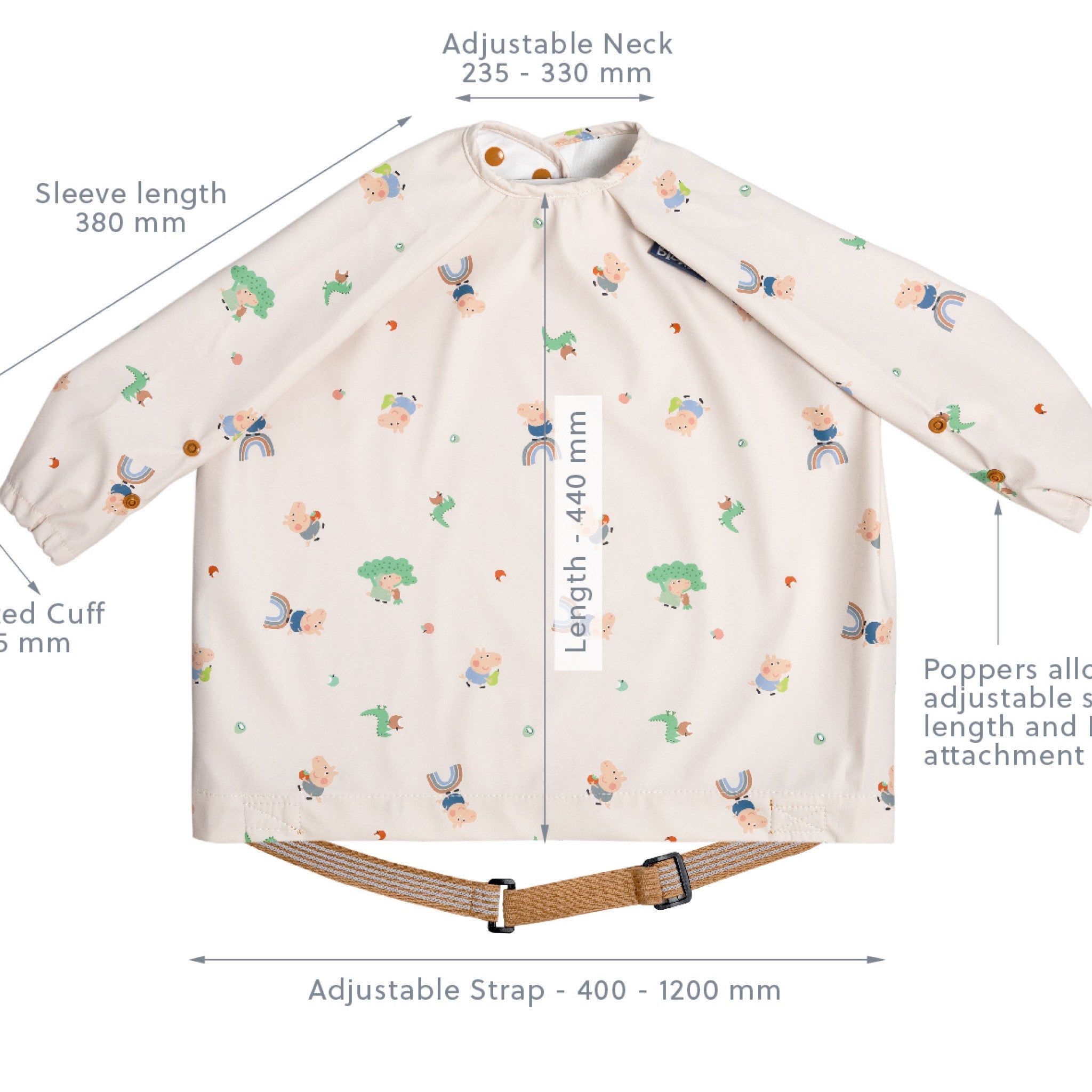 Make mealtimes a breeze with this fantastic coverall bib, ensuring your little one stays clean and dry no matter how messy things get! Its waterproof fabric and long sleeves provide ultimate protection from spills and splashes. The playful George Pig print adds a dash of fun to every mealtime adventure. Say goodbye to endless outfit changes and hello to stress-free feeding.