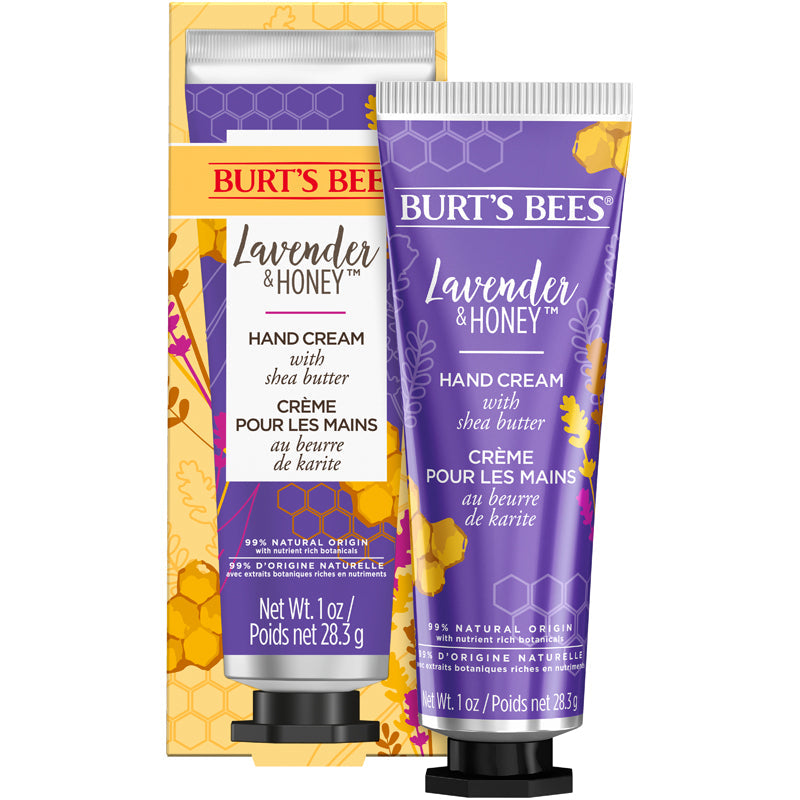 Burt’s Bees® Hand Cream with Shea Butter softens dry hands and indulges the senses with a botanical-blend fragrance of Lavender & Honey.