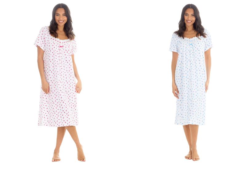 Ladies 100% Jersey Cotton Short Sleeve Floral Nightdress With Soft Lace Trim by Cottonique