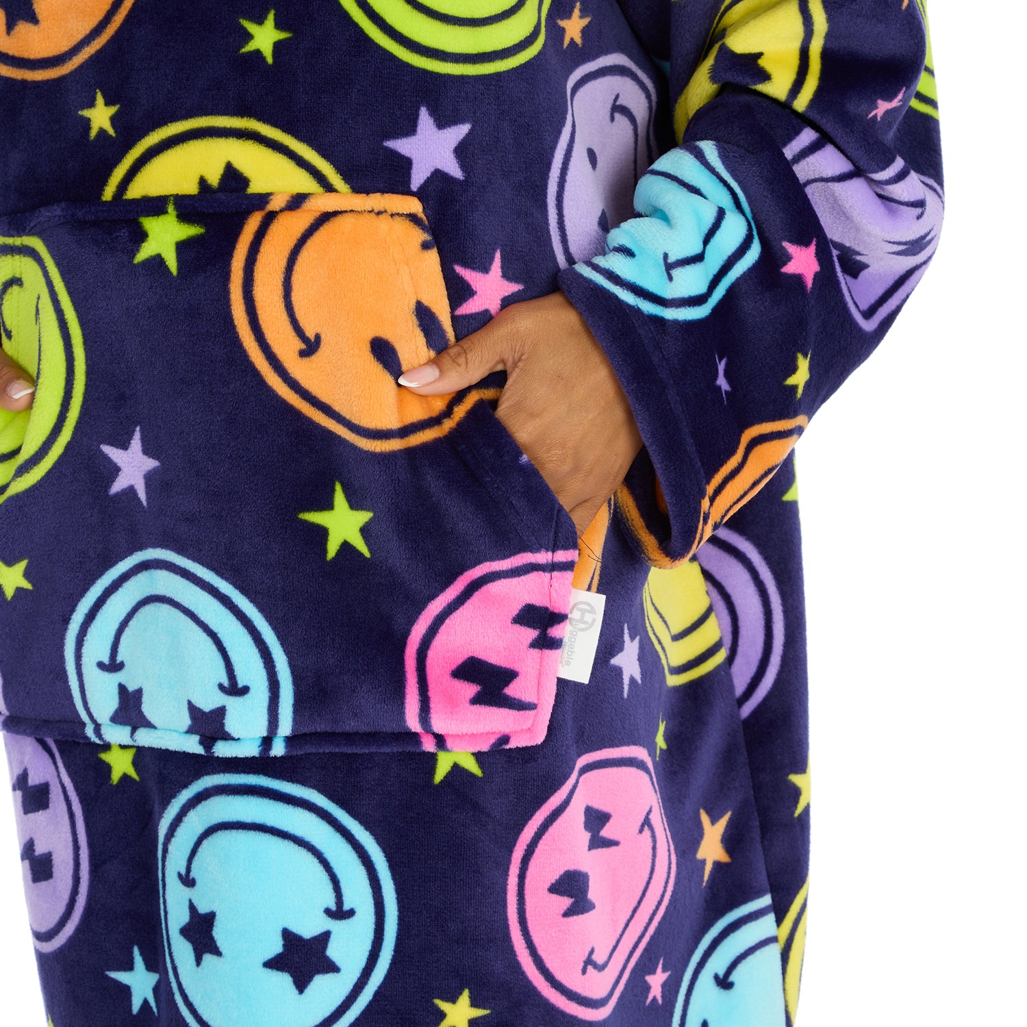 Ladies Supersoft Smiley Faces Sherpa Fleece Oversize Hoodie by Huggable Hoodie