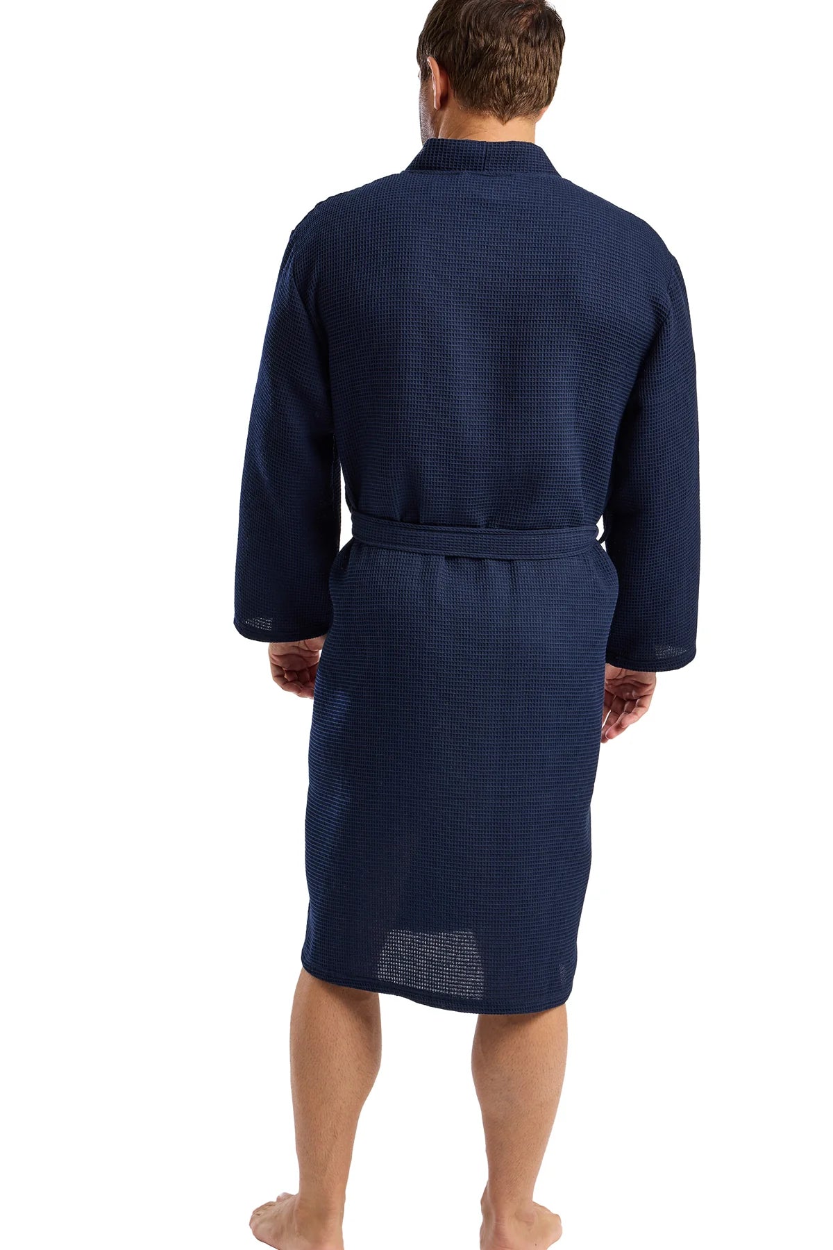 Men's Navy 100% Light Cotton Helmsley Classic Waffle Robe by West Ridge