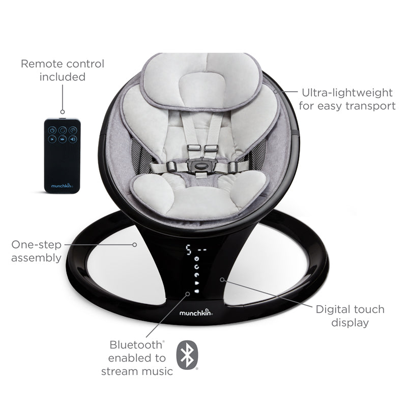 - Emulates parents’ natural side-to-side sway in 5 distinct speeds Bluetooth enabled to play your child's favourite music from your phone