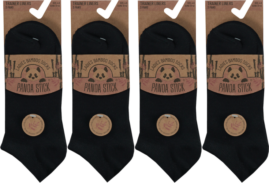 Experience luxurious comfort with these Ladies bamboo blend trainer liner socks by Panda Stick, available in a convenient 3 pair pack. Made from a blend of pure natural bamboo fibres, they are exceptionally breathable, moisture-wicking, and naturally antibacterial, providing optimal performance for sports and casual wear.