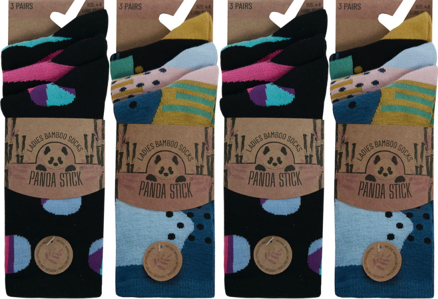 Panda Stick Ladies Bamboo Blend Comfort Soft Ankle Socks Patterned