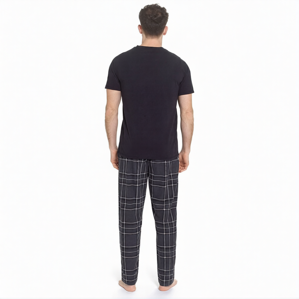 Men's Black Polycotton Jersey Short Sleeve Top & Soft Fleece Checked Pants by Foxbury 6 Pieces