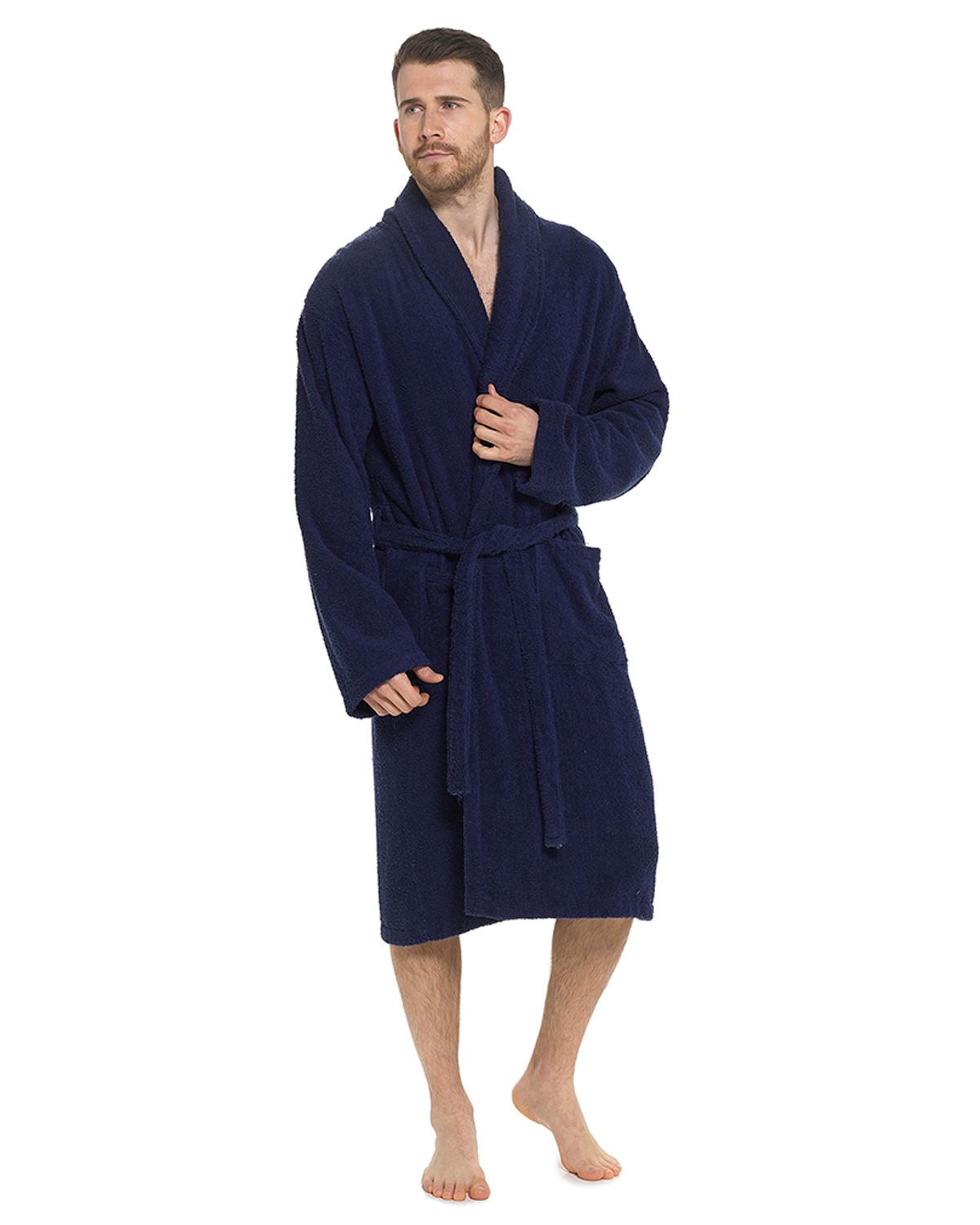 Men's Navy Pure Cotton Towelling Robe by Tom Franks 6 Pieces