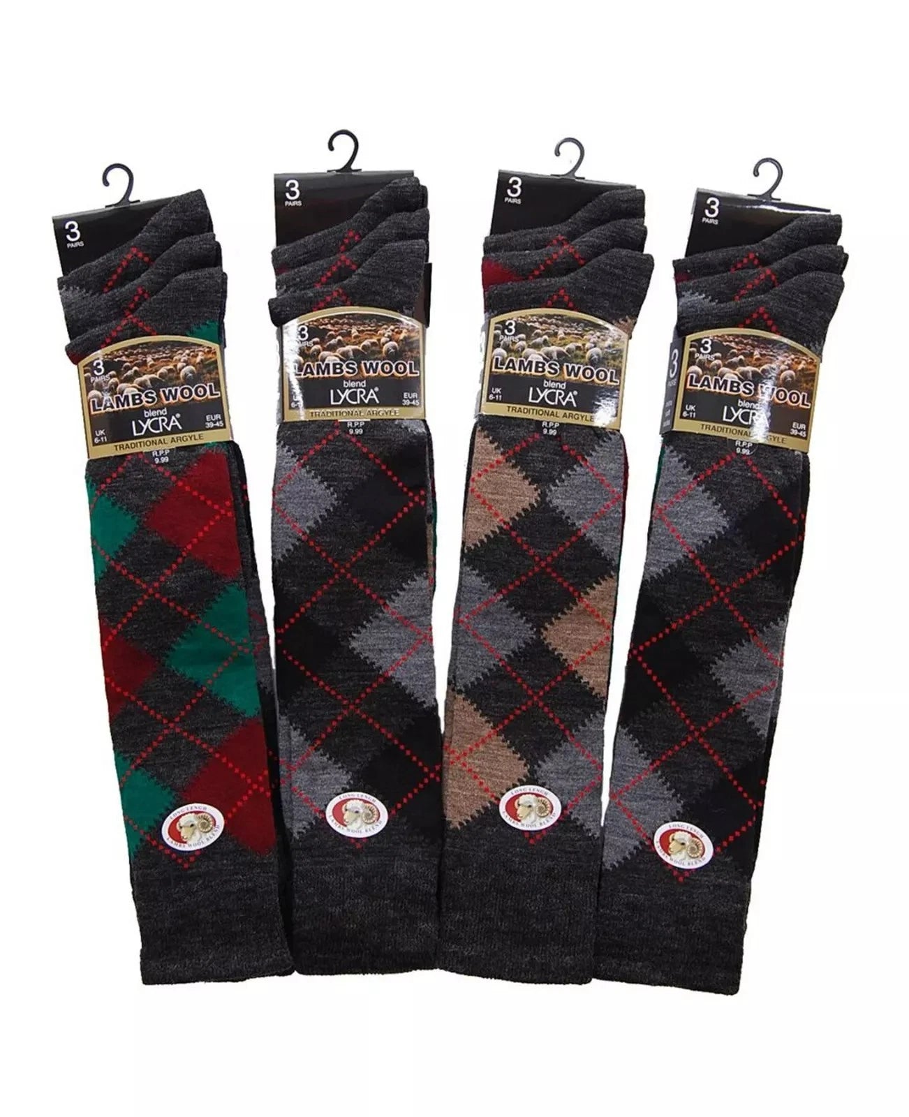 Mens Argyle Lambs Wool Blend Long Hose Socks