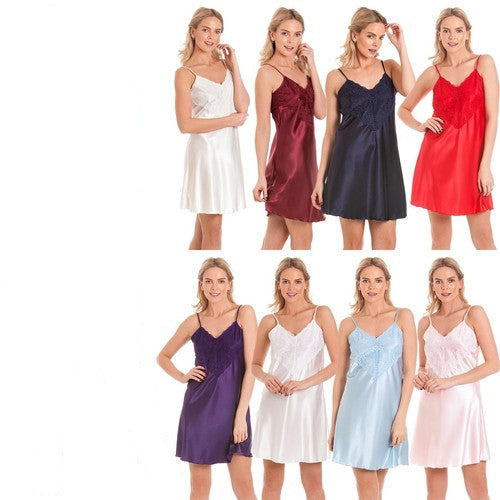 English Made Satin Short Nightdress with Deep Lace Detail by Lady Olga