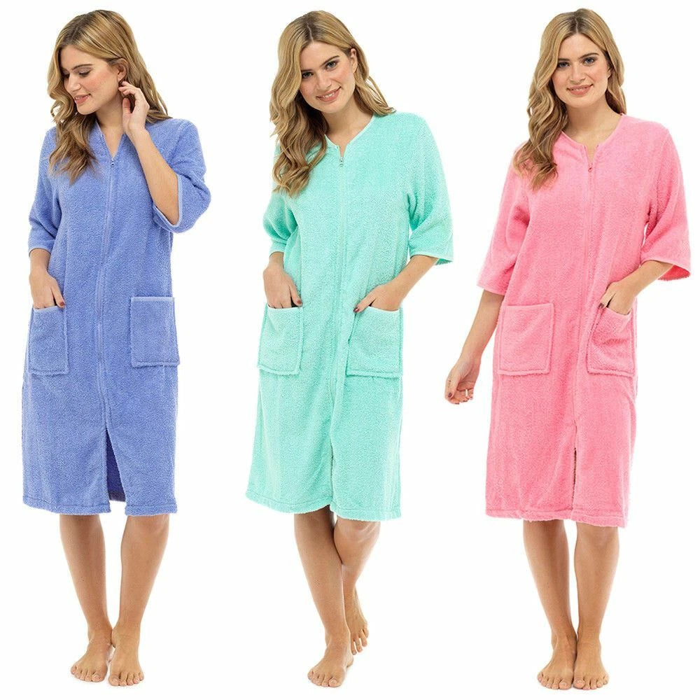 6 Pack Ladies Pure Cotton Zip Through Terry Towelling Robe