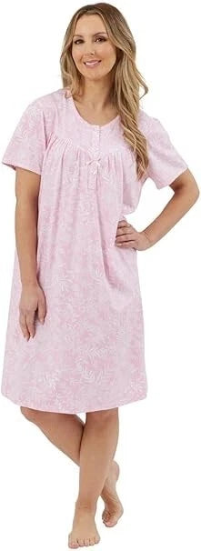 Ladies 100% Jersey Cotton Linear Pastel Floral Short Sleeve Tee Nightshirt by Marlon