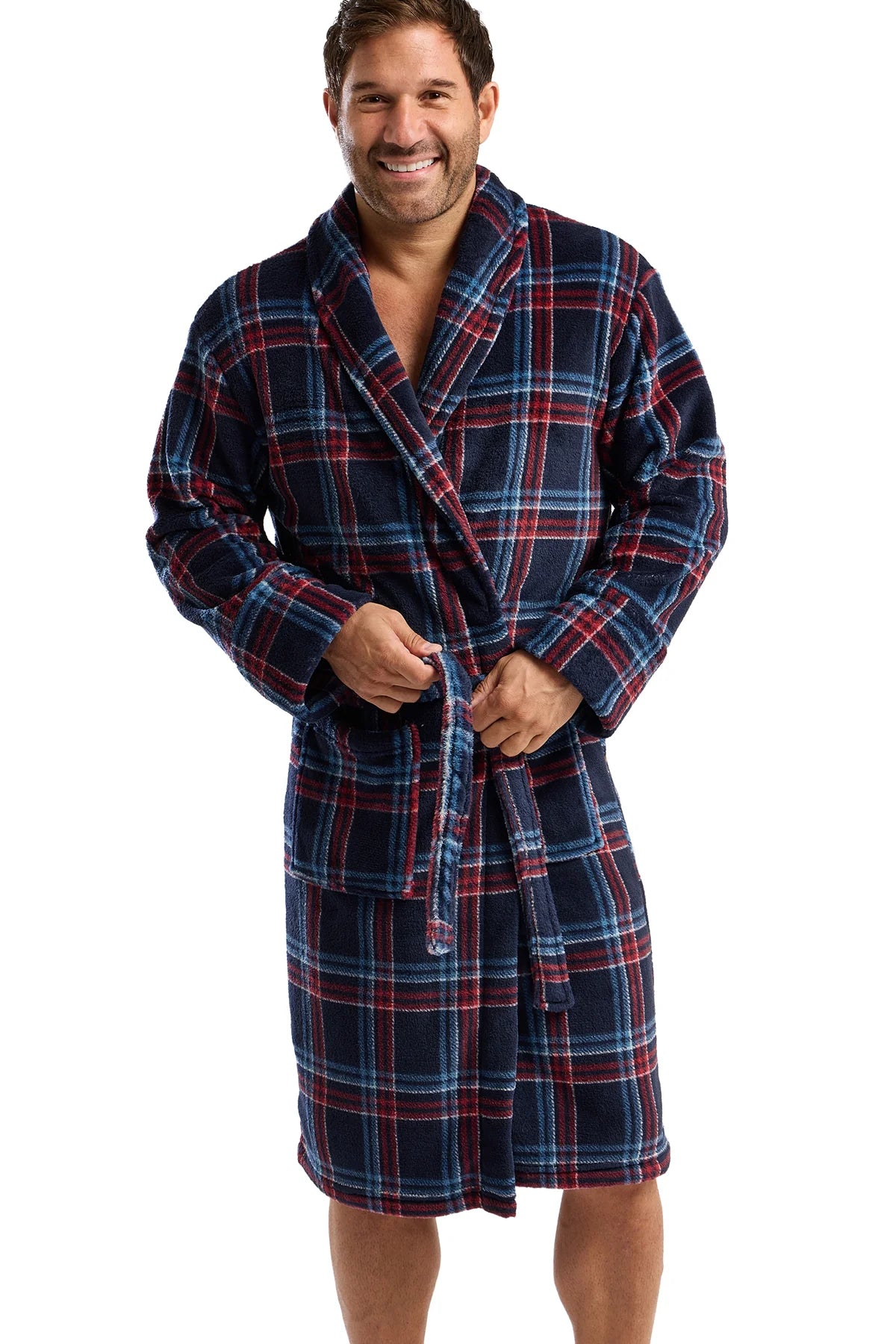 Men's Soft Feel Checked Farsley Cosy & Warm Fleece Shawl Collar Robe by West Ridge