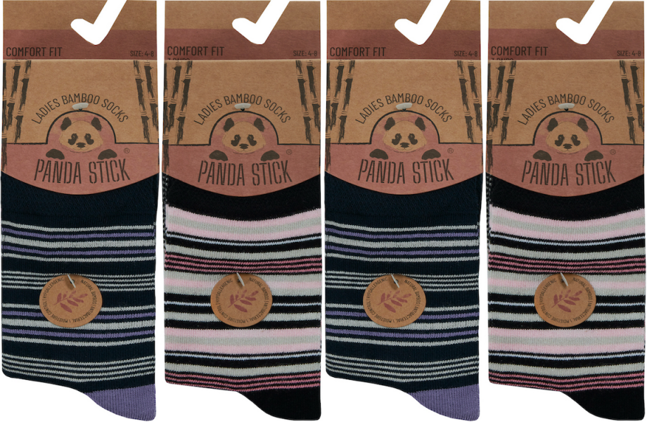 Introducing Panda Stick Ladies Bamboo Blend Comfort Soft Ankle Socks Assorted. Made with a rich blend of bamboo fibres, these socks offer breathability, moisture absorption, and natural antibacterial properties. The geometric design and soft welt top provide comfort and style.
