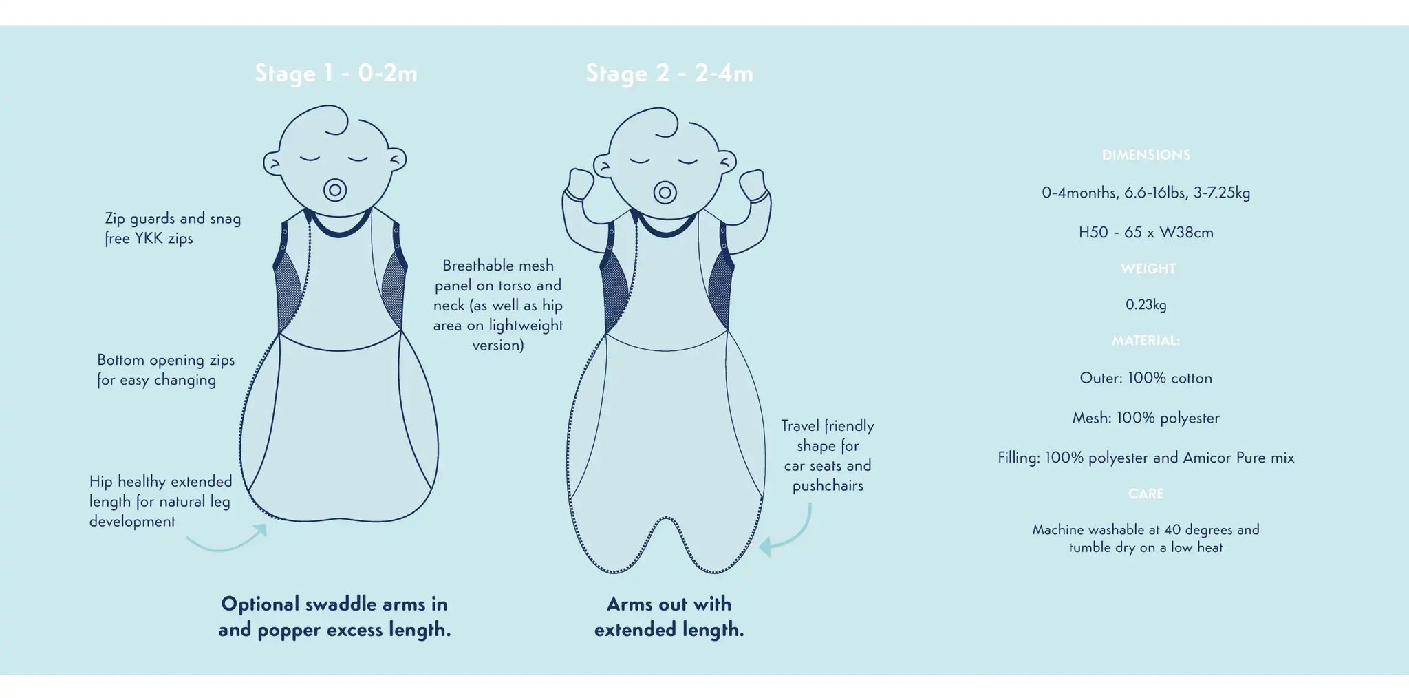 Weight Range 6.6 - 16lbs (3 - 7.25kg)