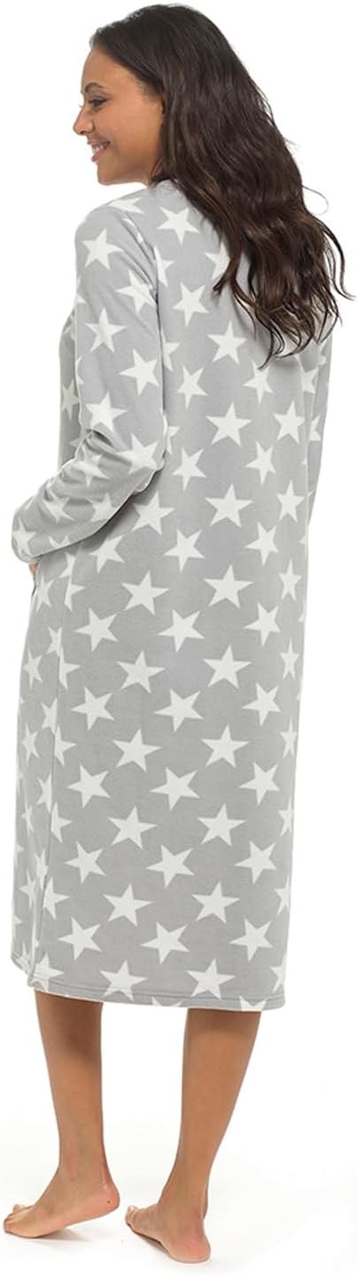 Ladies Polar Fleece Star Print Long Length Nightdress By Wolfe & Harte 6 Pieces