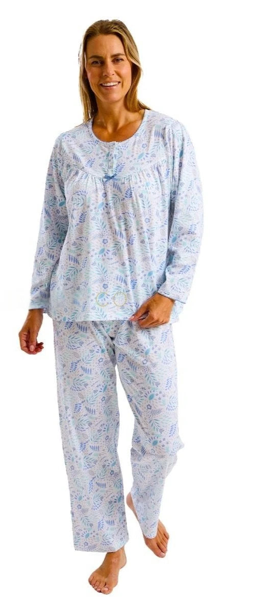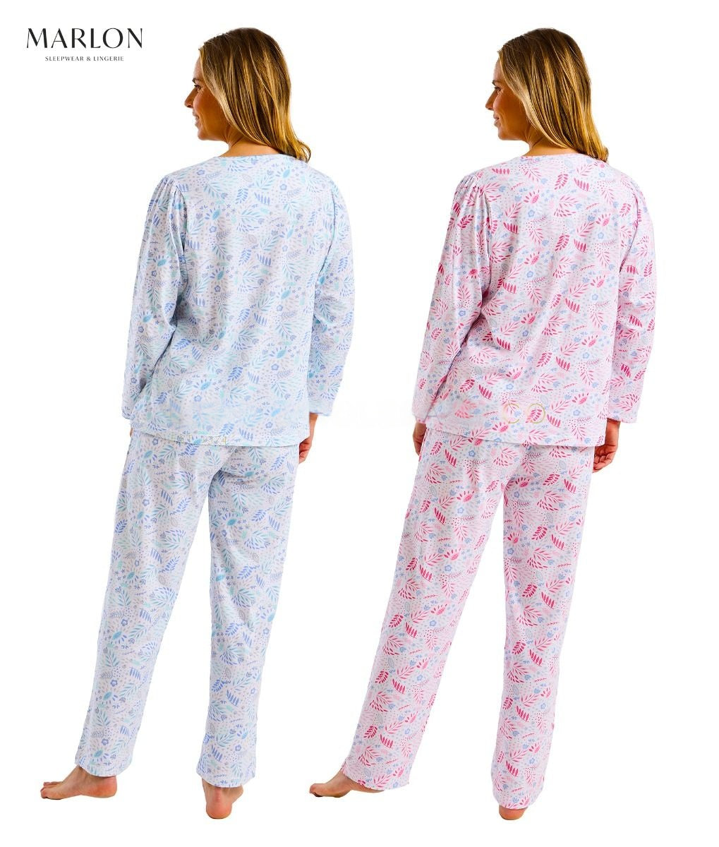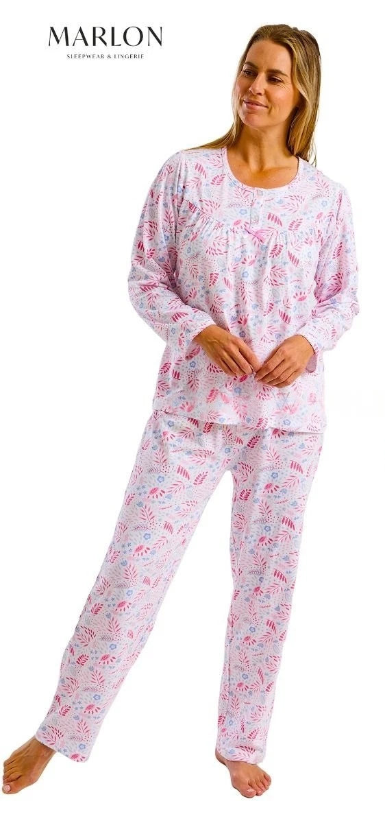 Ladies Fun Floral 100% Cotton Jersey Long Sleeve Pyjamas by Marlon