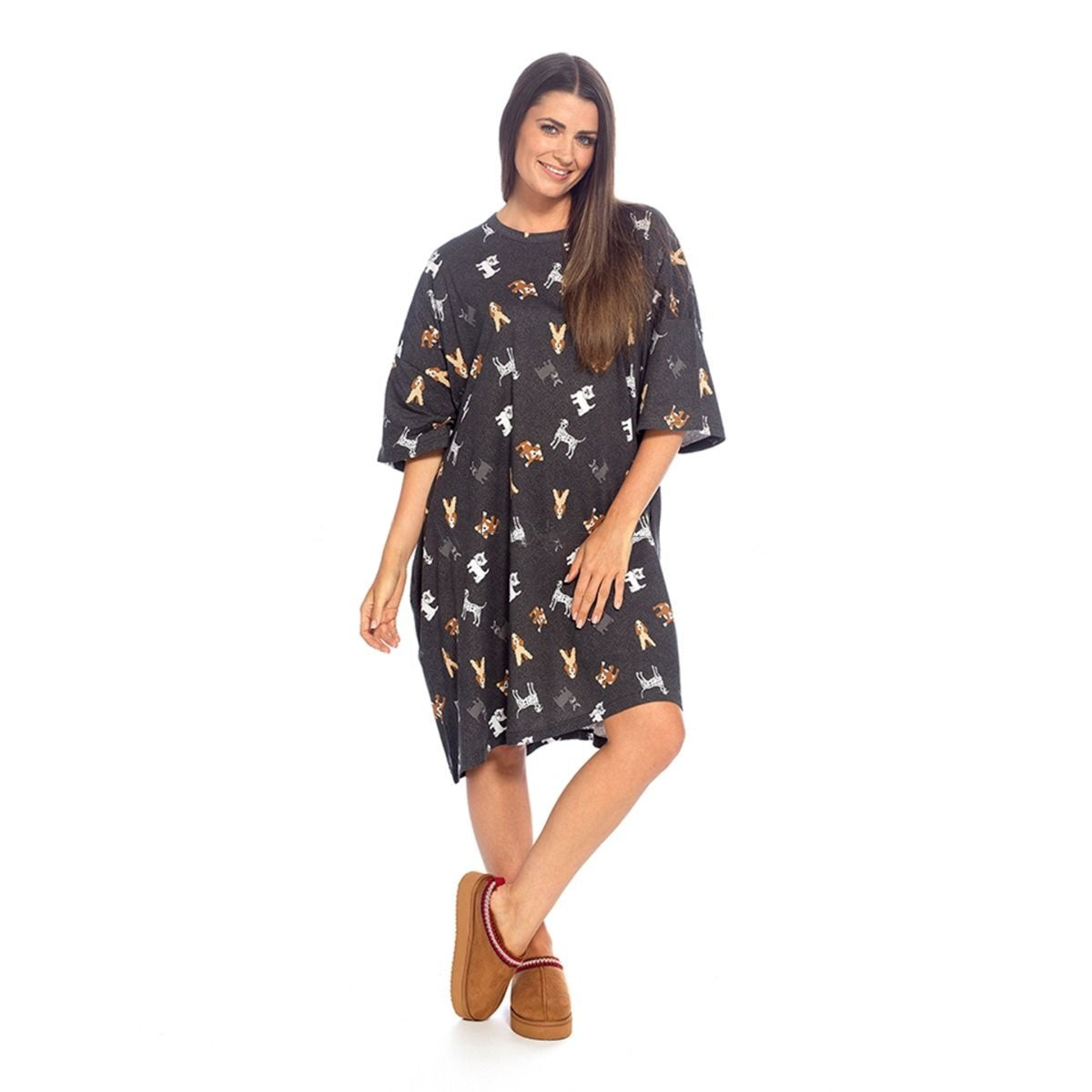 Ladies Short Sleeved Dog Print One Sized Jersey Nightshirt